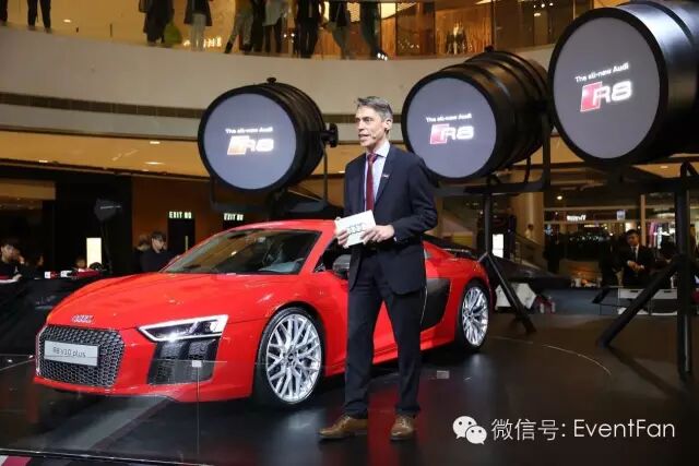 Audi在香港中环的国际金融中心举行新车发布会,除了展出最近款的V10和V10Plus,还展出上年曾出战澳门格兰披治大赛车、车手李英健的灰红色迷彩车花的全新Audi R8 LMS x AAPE BY A BATHING APE战车,吸引大批传媒和车迷到场。